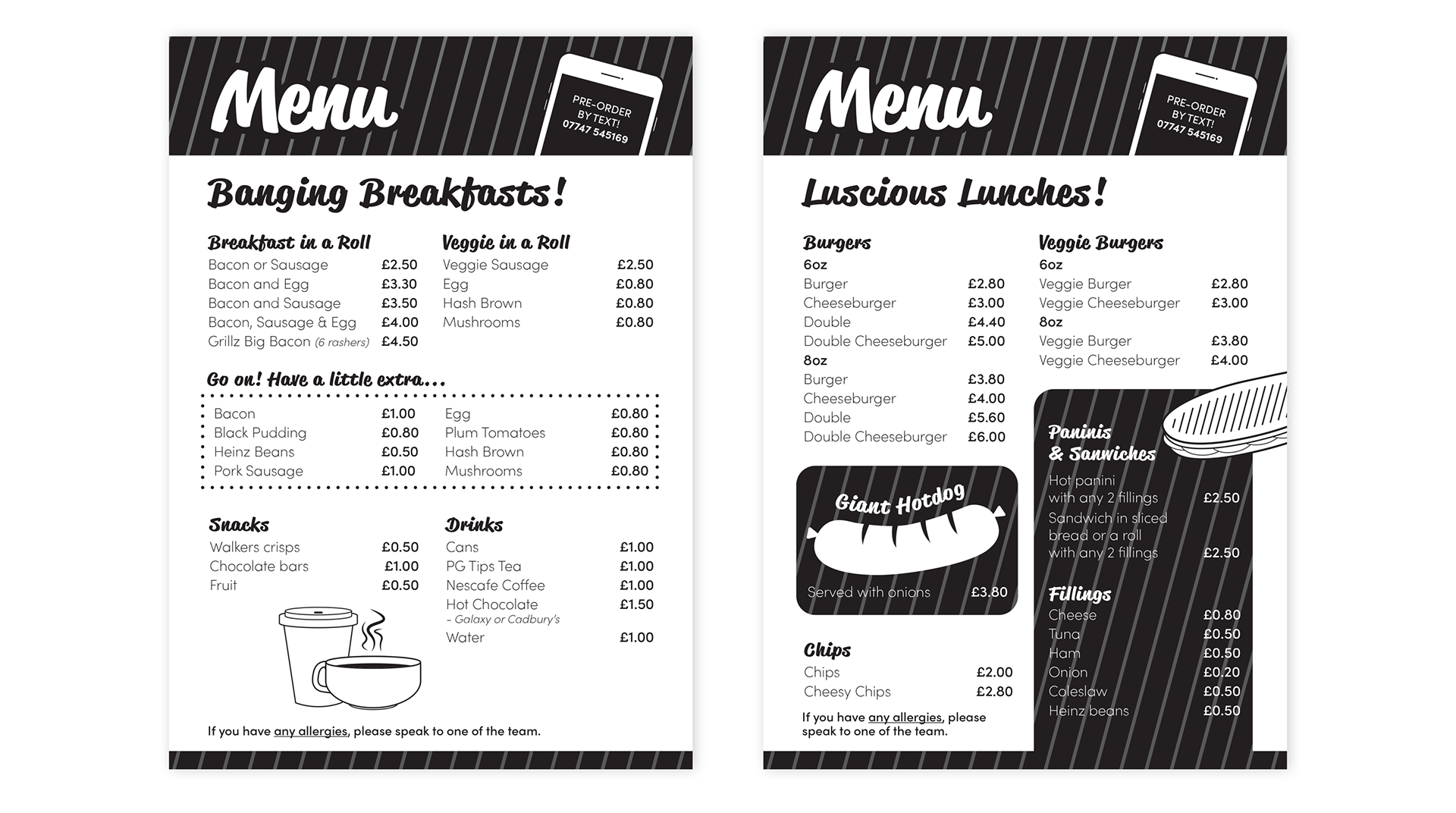 GriLLz were starting a brand new venture - a catering truck specialising in breakfast foods and burgers. Alongside an identity and logo, the team needed some menus and advertising leaflets to get them started.